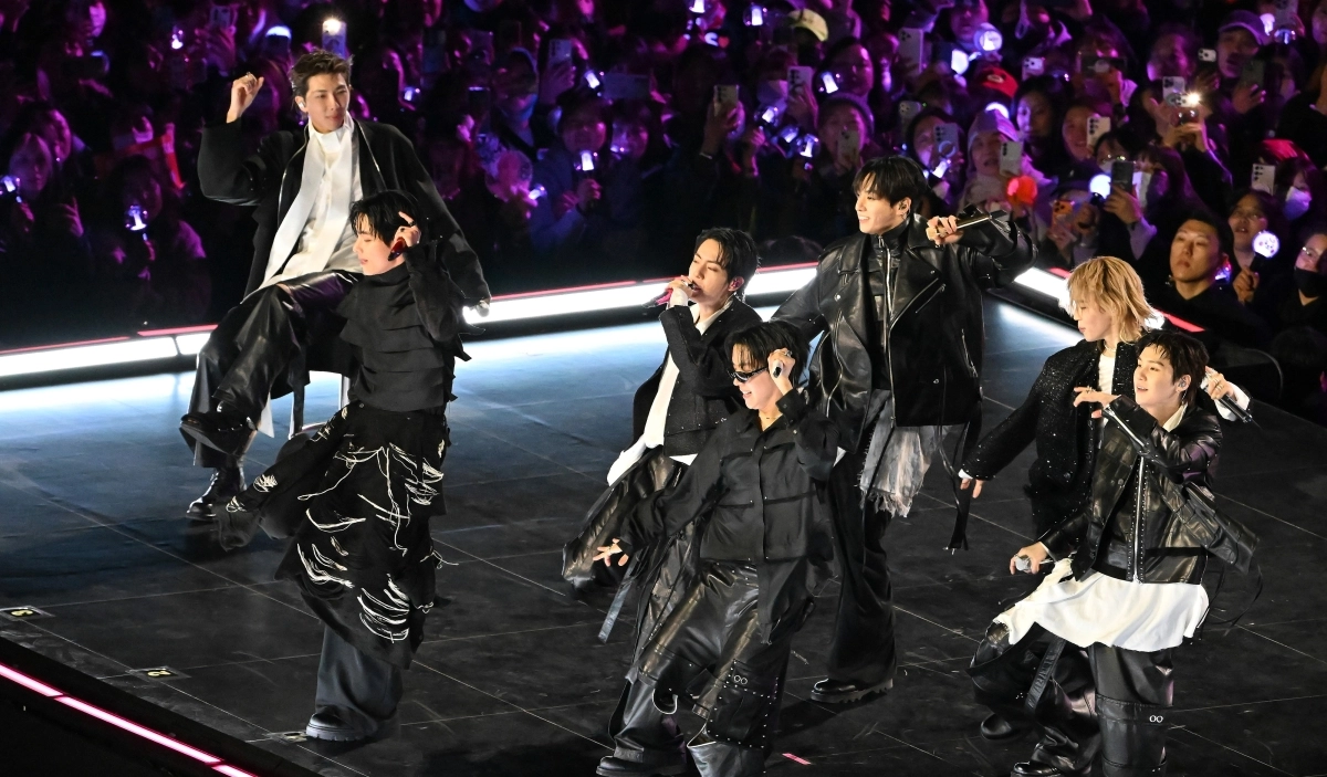 BTS는 21일 오후 8시 서울 광화문광장 무대에서 ‘BTS 컴백 라이브: 아리랑’ 공연을 시작했다. 군복무로 인해 활동을 잠정 중단한 BTS의 복귀를 기다려온 전세계 팬들은 광화문광장과 넷플릭스 생중계를 통해 복귀 공연을 즐기고 있다. BTS가 7명 모두 참여하는 ‘완전체’로 공연하는 것은 2022년 10월 ‘옛 투 컴 인 부산(Yet to Come in BUSAN)’ 공연 이래 3년 5개월 만이다.
