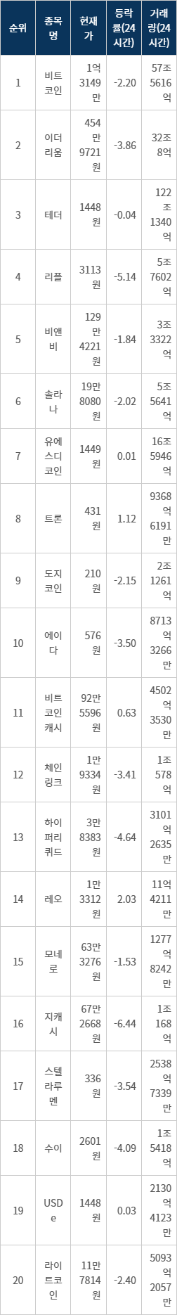 전반적으로 주요 가상자산들이 하락세를 보이고 있으며, 단기적인 투자에는 주의가 필요하다. 시장의 변동성이 큰 만큼 투자 결정을 신중히 할 필요가 있다.