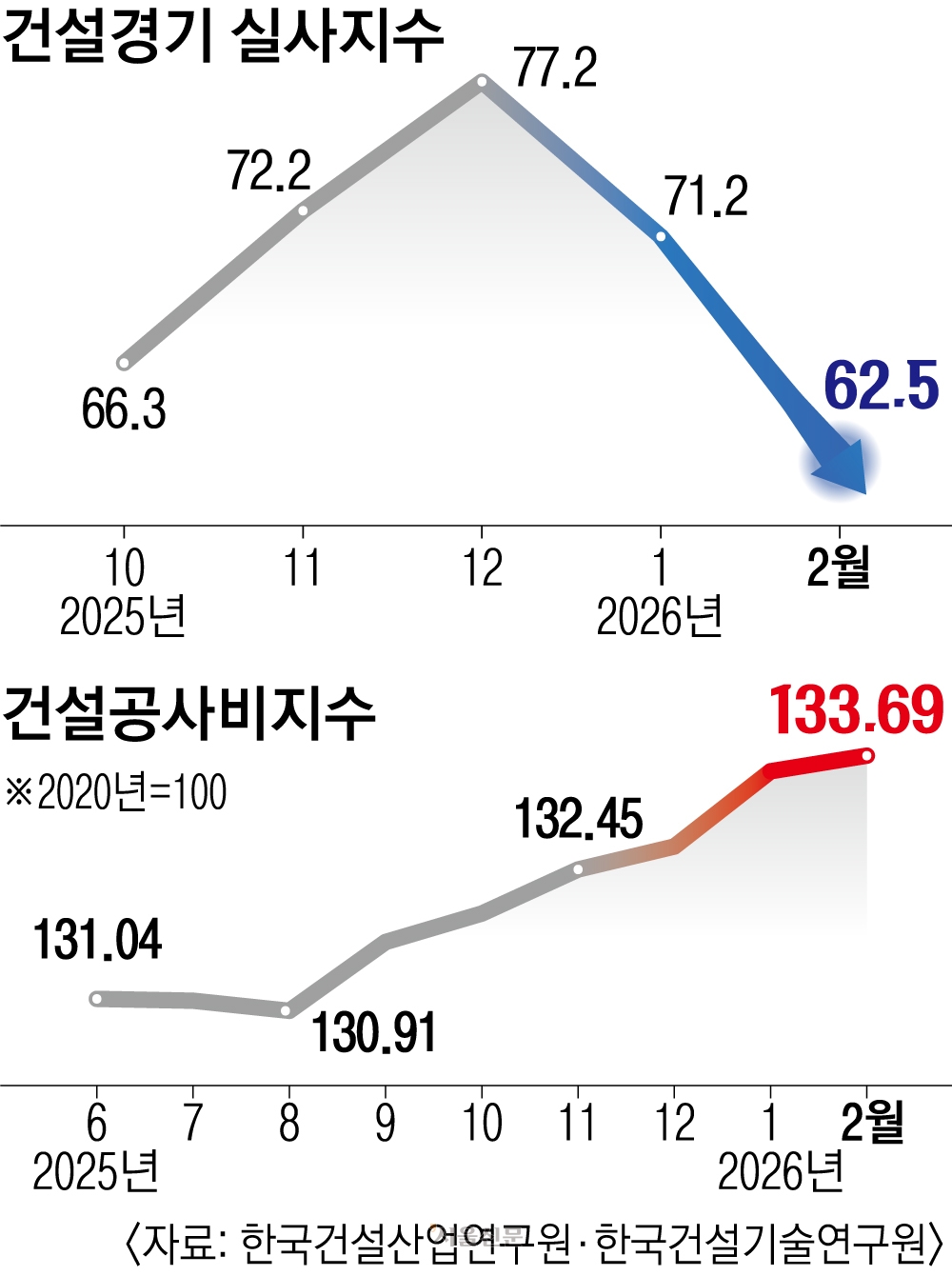 게다가 중동 전쟁에 따른 호르무즈 해협 봉쇄는 나프타 등 공급망 타격으로 이어졌다. 나프타는 레미콘 생산에 필수적인 혼화제의 원료다. 또 인테리어 재료 생산에 필요한 에틸렌은 나프타를 분해해 만들어지고, 페인트 역시 나프타가 주원료다. 이런 가운데 건설업계의 공사비 부담은 점점 커지고 있다. 한국건설기술연구원이 발표한 2월 건설공사비지수는 133.69(2020년=100)를 기록했다. 이는 2020년 이후 6년 새 공사비가 33.69% 상승한 것이다.