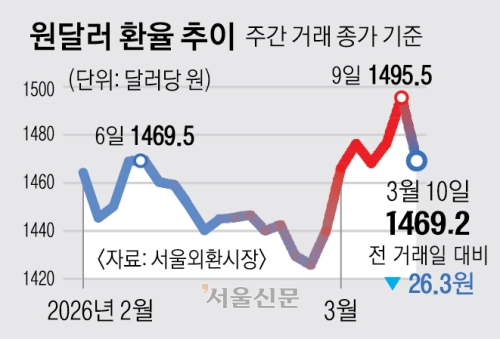 원달러 환율 하루 만에 1460원대