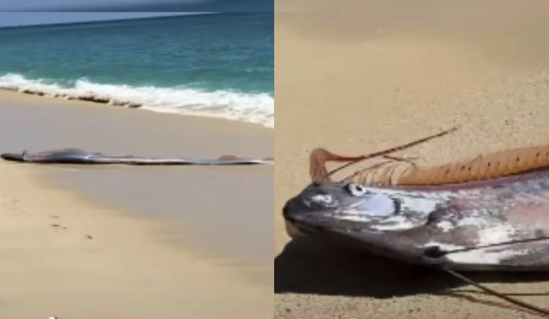 지난 4일 멕시코 카보산루카스 해변에 나타난 산갈치. 소셜미디어 캡처