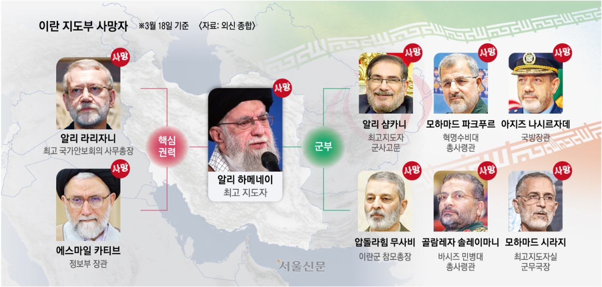 이란이 안보 수장인 알리 라리자니 최고국가안보회의 사무총장의 사망을 공식 확인하며 미국과 이스라엘을 상대로 ‘가혹한 복수’를 다짐했다. 알리 하메네이 사후 전시 이란의 안보·군사라인을 총괄하던 실권자가 제거되면서 강경파가 더욱 득세할 것이란 전망이 나온다.