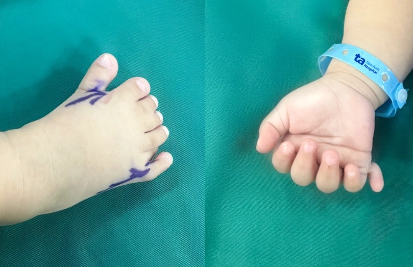 베트남에서 손가락과 발가락 개수가 정상보다 많거나 서로 붙어 있는 희귀 복합 기형을 가진 8개월 영아가 성공적으로 수술을 마친 사연이 전해졌다.