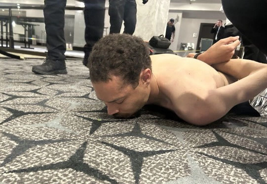 공개된 사진을 보면, 용의자로 추정되는 인물은 상의를 탈의한 채 두 손이 뒤로 결박되어 바닥에 엎드려 있었다. 용의자가 폭발물이나 추가 무기를 갖고 있을 가능성을 확인하기 위해 보안당국이 체포 직후 상의를 벗긴 것으로 보인다.