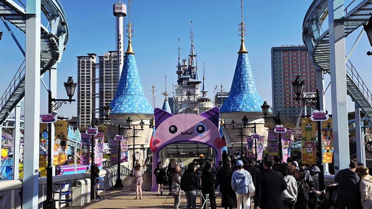롯데월드 어드벤처 내부 모습. 파크 전체를 메이플스토리 IP로 채우는 시즌 페스티벌 ‘메이플스토리 인 롯데월드’가 진행중이다.