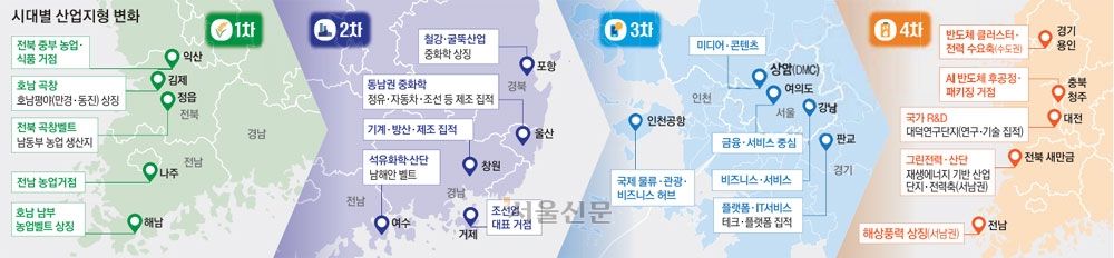 4차 산업 시대의 도래와 함께 대한민국 산업의 중심축이 대이동하고 있다. 농업을 기반으로 한 1차 산업은 곡창지대 호남에서 꽃피웠고 제조업과 중화학 공업을 앞세운 2차 산업은 영남을 중심으로 국가 성장의 엔진이었다. 3차 서비스 산업이 수도권에서 뿌리내렸고 이제 재생에너지와 전력 인프라를 축으로 한 4차 산업의 메카로 호남과 충청 등 서남권이 부상하고 있다. 전문가들은 미래 산업의 흐름을 확대해 지역균형발전의 기회로 삼아야 한다고 강조했다.