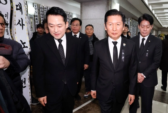 정 대표는 이날 서울대병원 장례식장에 마련된 빈소를 찾은 장 대표 등 국민의힘 지도부를 상주 자리에서 맞았다.