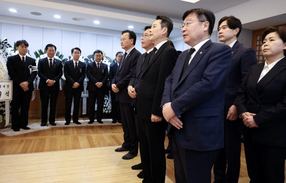 정 대표는 빈소를 떠나는 장 대표와 국민의힘 지도부를 문 앞까지 배웅하는 모습도 보였다.