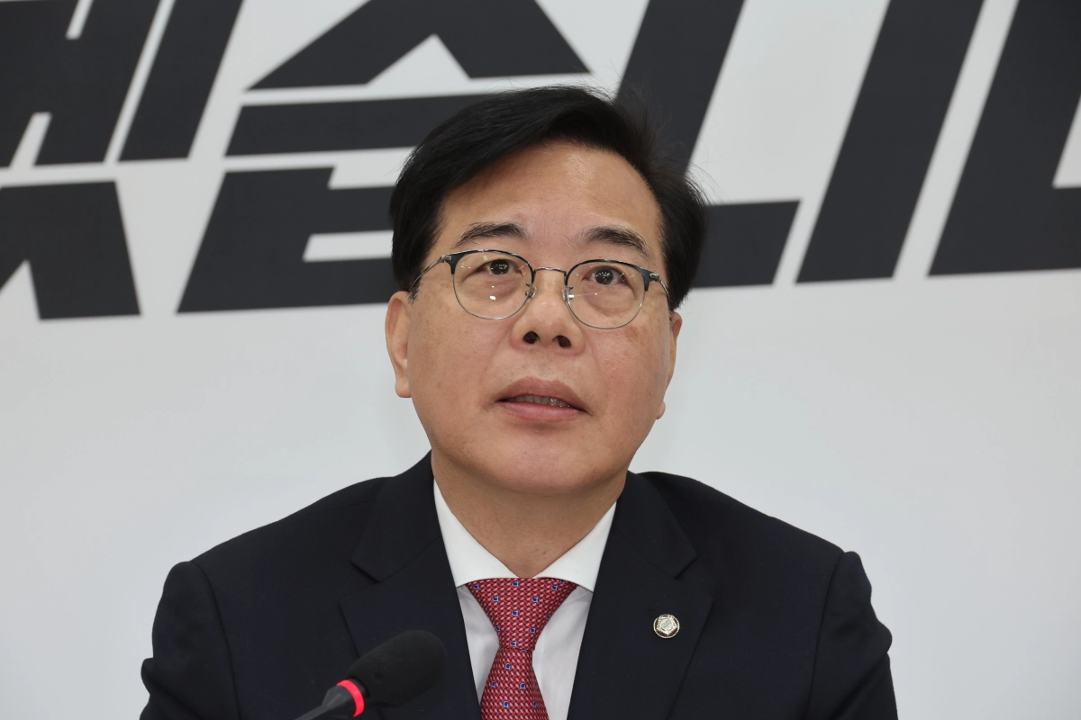 송언석 국민의힘 원내대표가 27일 오전 서울 여의도 국회에서 기자간담회를 열고 발언을 하고 있다. 뉴시스
