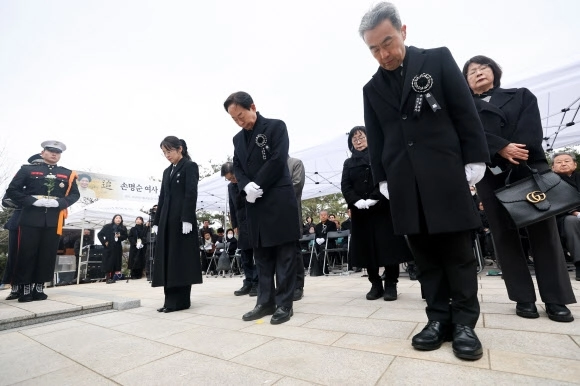 정치 [포토] 손명순 여사 서거 2주기 추모식 입력 2026-03-06 15:20 수정 2026-03-06 15:28 기사 읽어주기 다시듣기 글씨 크기 조절 글자크기 설정 닫기 글자크기 설정 시 다른 기사의 본문도 동일하게 적용 됩니다. 가 가 가 가 가 프린트 공유하기 공유 닫기 페이스북 네이버블로그 엑스 카카오톡 밴드 https://www.seoul.co.kr/news/politics/2026/03/06/20260306800007 URL 복사 댓글 0 김현철 김영삼대통령기념재단 이사장이 6일 서울 동작구 국립서울현충원에서 열린 김영삼 전 대통령 부인 손명순 여사의 서거 2주기 추모식에서 인사말을 하고 있다. 온라인뉴스부 Copyright ⓒ 서울신문 All rights reserved. 무단 전재-재배포, AI 학습 및 활용 금지