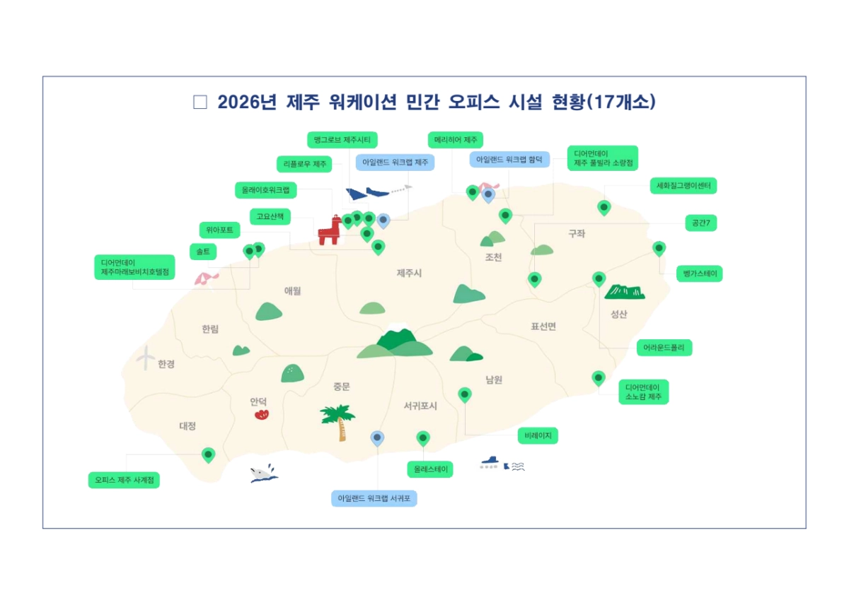 제주 워케이션 민간 오피스 시설 현황. 제주도 제공