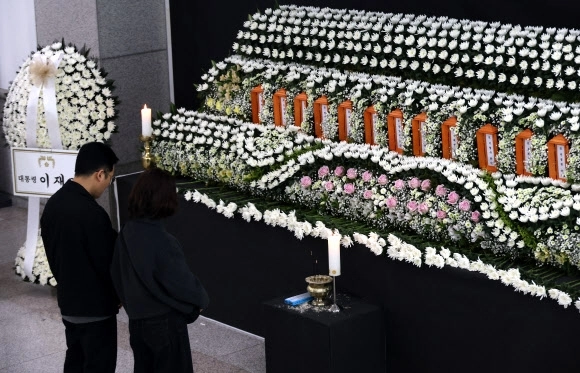 자녀의 변고가 아직도 믿기지 않은 듯 분향소에 머무는 내내 발만 동동 구르며 어찌할 바를 몰라 했다.