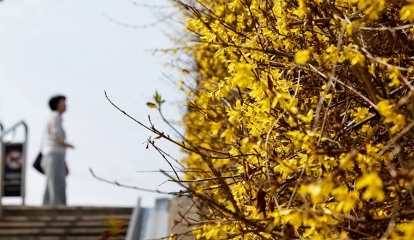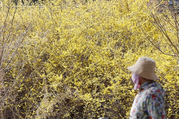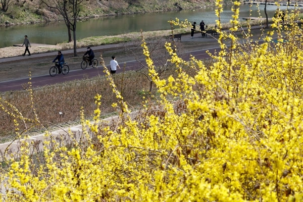 한강과 서울숲을 비롯한 서울 동부권을 한눈에 내려다볼 수 있는 조망 명소로 꼽히는 응봉산은 봄이면 산 전체가 개나리꽃으로 뒤덮인다.
