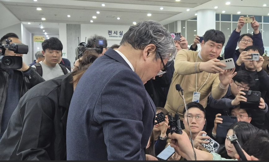 대형 참사 발생 후 희생자와 유족에 대한 막말 논란으로 공분을 사고 있는 손주환 안전공업 대표가 26일 대전시청에 마련된 합동분향소를 찾아 사과문을 발표하고 있다.