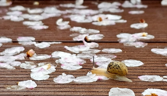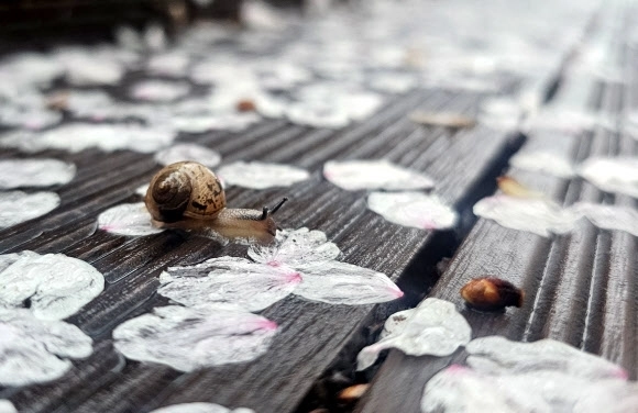 사회 [포토] 벚꽃길 산책하는 달팽이 입력 2026-04-10 09:29 수정 2026-04-10 09:29 기사 읽어주기 다시듣기 글씨 크기 조절 글자크기 설정 닫기 글자크기 설정 시 다른 기사의 본문도 동일하게 적용 됩니다. 가 가 가 가 가 프린트 공유하기 공유 닫기 페이스북 네이버블로그 엑스 카카오톡 밴드 https://www.seoul.co.kr/news/society/2026/04/10/20260410800002 URL 복사 댓글 0 전국 곳곳에 봄비가 내리는 10일 강원 춘천시 공지천 벚꽃길 데크 위로 달팽이가 기어가고 있다. 온라인뉴스부 Copyright ⓒ 서울신문 All rights reserved. 무단 전재-재배포, AI 학습 및 활용 금지 Q. 기사를 끝까지 읽으셨나요? 이제 AI 퀴즈로 기사의 핵심 내용을 점검해보세요. 기사에서 언급된 주요 기상 현상은? 봄비 봄눈