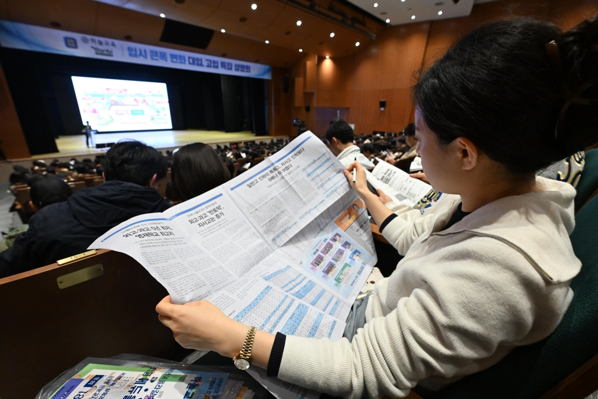 한 학부모가 12일 오후 서울 종로구 성균관대학교 600주년 기념관에서 열린 지역의사제 도입, 초중고 의대 및 대입변화 특집 설명회를 찾아 관련정보를 보고 있다. 2026.4.12 도준석 전문기자
