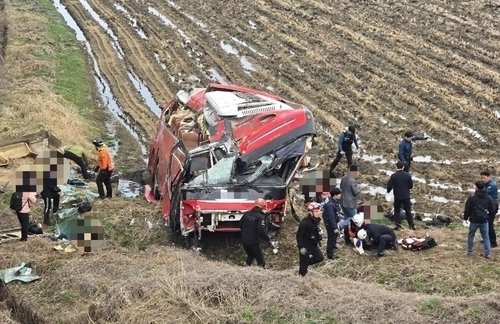 사고 충격으로 버스는 맞은편 가드레일을 뚫고 10m 아래 논으로 굴러떨어졌다. 버스는 차체가 많이 훼손됐지만, 다행히 전복되지 않고 정자세로 멈춰 섰다.