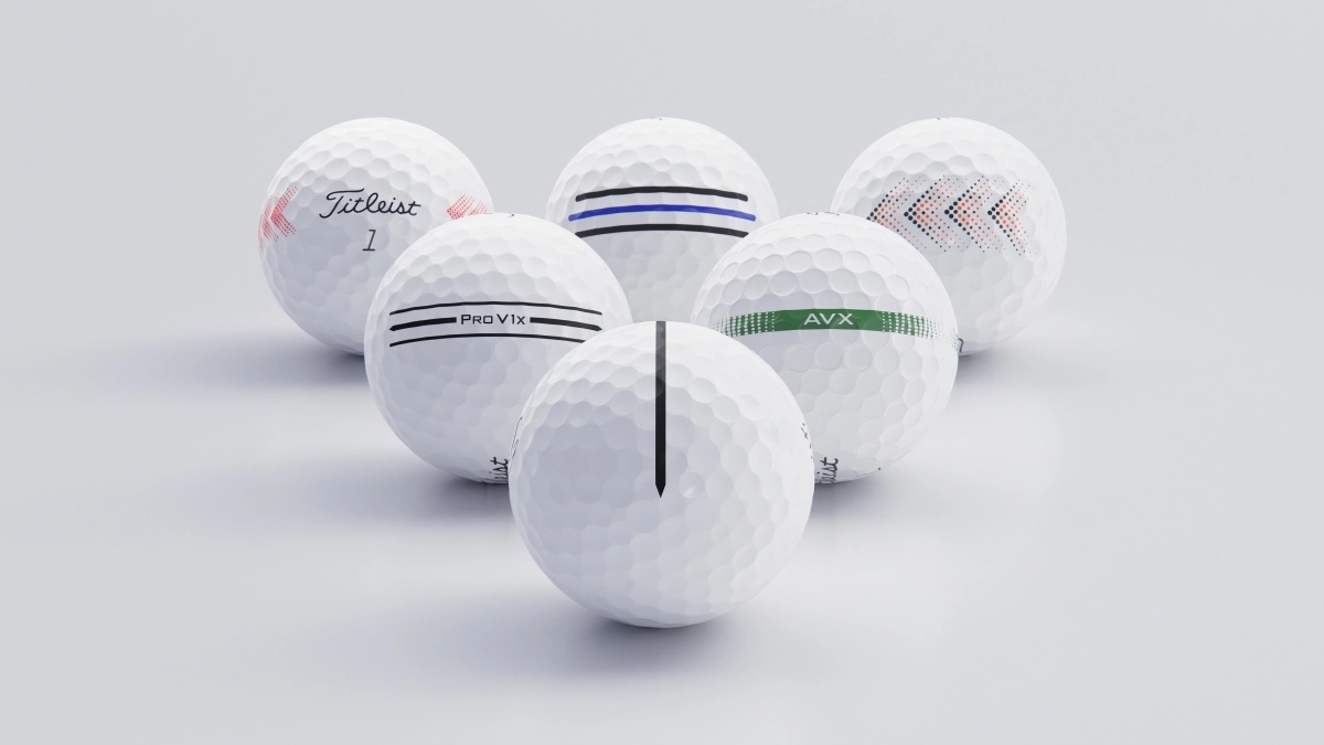 팅 때 정렬을 돕는 AIM 디자인을 적용한 프로V1, AVX, 투어 소프트, 벨로시티, 트루필 등 타이틀리스트 골프볼. 타이틀리스트 제공.